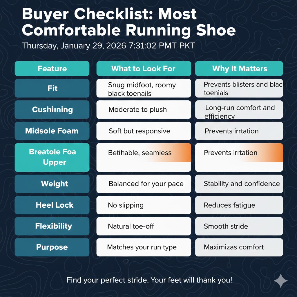 Buyer Checklist: Most Comfortable Running Shoe